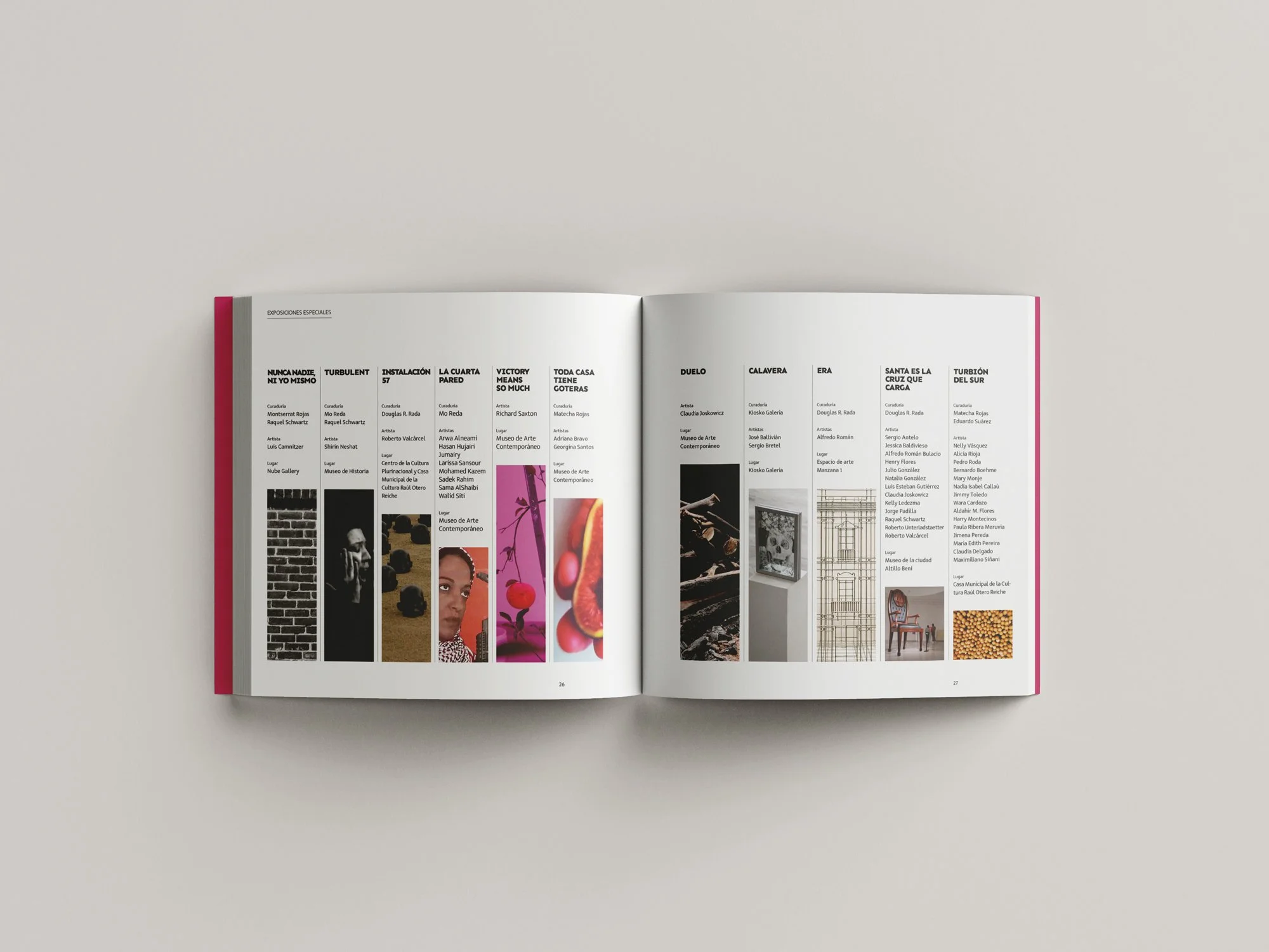 Desde el diseño editorial, se desarrolló un sistema visual sobrio y flexible que integra imagen y texto con claridad, priorizando legibilidad, ritmo y coherencia entre los distintos materiales. Más que un registro, el catálogo funciona como una extensión del pensamiento crítico de la Bienal.