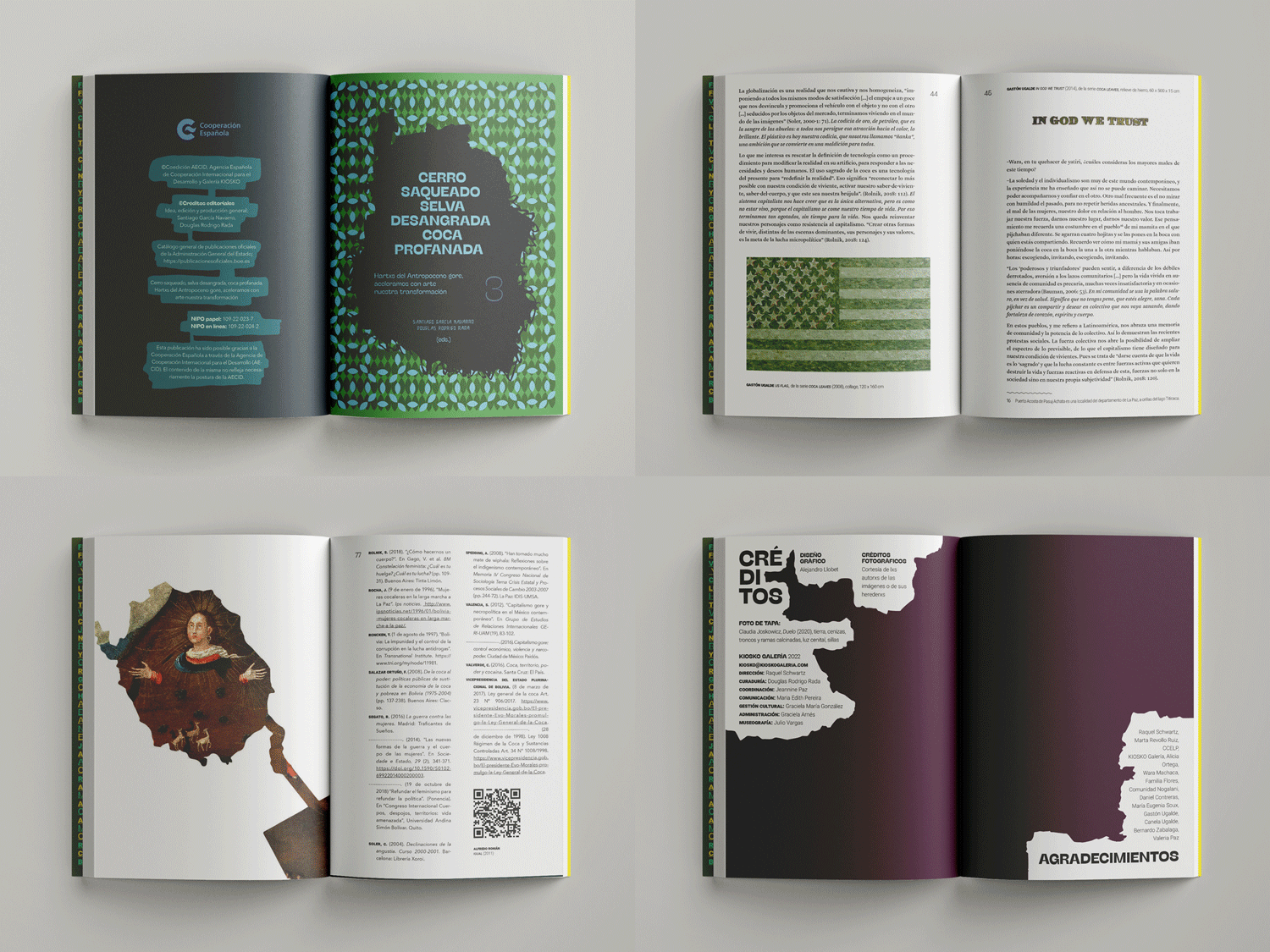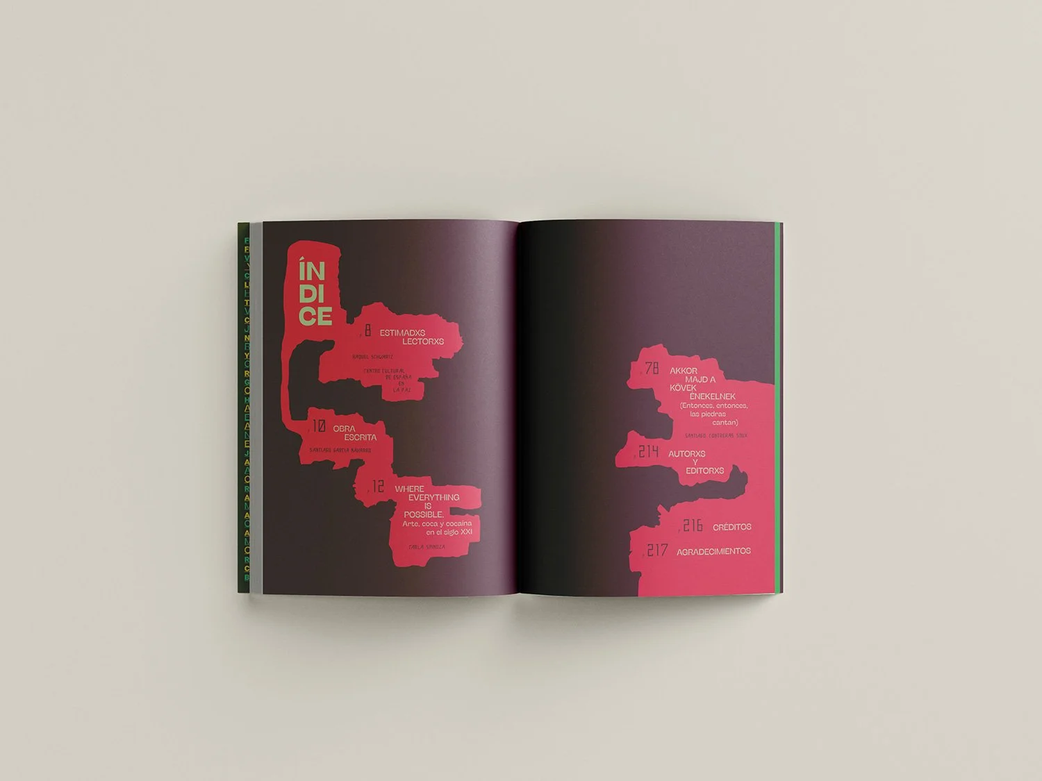 El diseño editorial articula ensayos extensos dentro de una estructura clara, definida por una retícula sobria, composición precisa y jerarquías tipográficas que facilitan la lectura. La cubierta incorpora un patrón orgánico que dialoga con los temas de cuerpo y materialidad presentes en los textos.