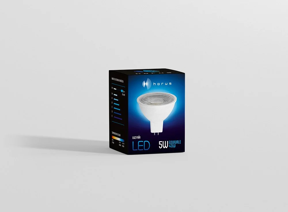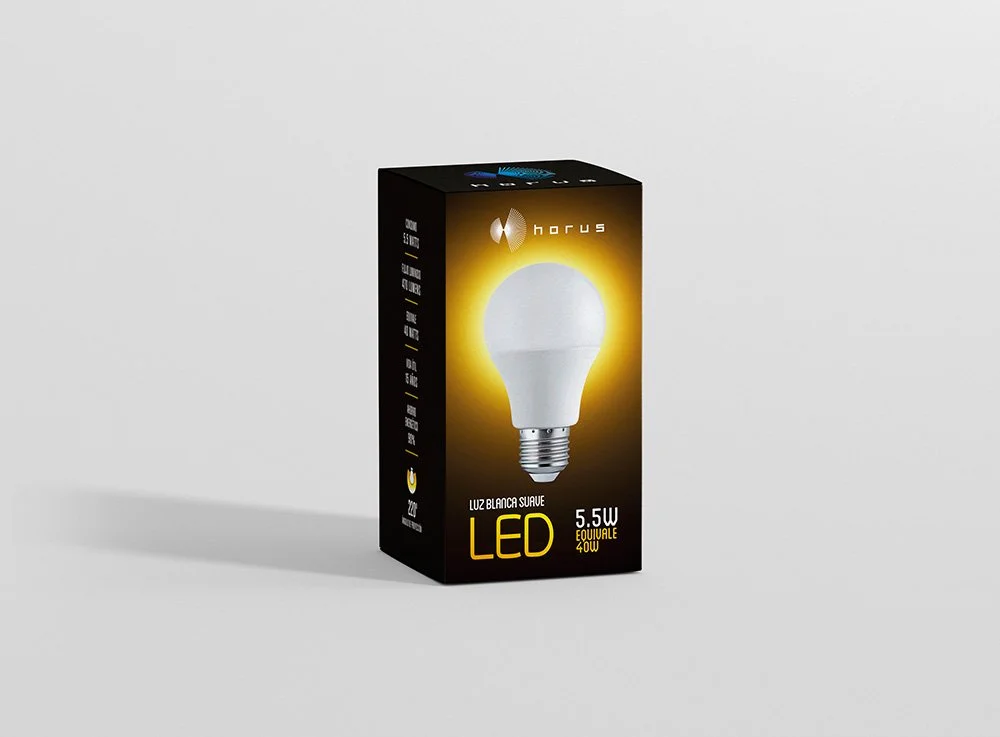 Sistema de identidad y empaque creado para HORUS, especializado en iluminación LED. La propuesta explora composiciones geométricas y una paleta sobria para transmitir innovación, eficiencia y un carácter tecnológico accesible.